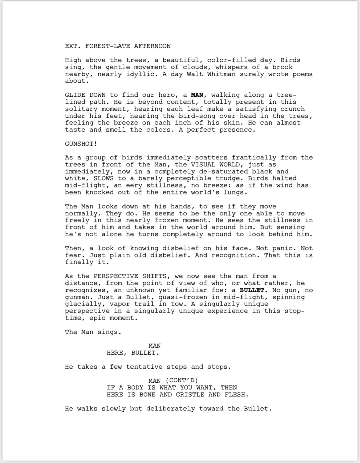 1st Page Screenplay of HERE, BULLET