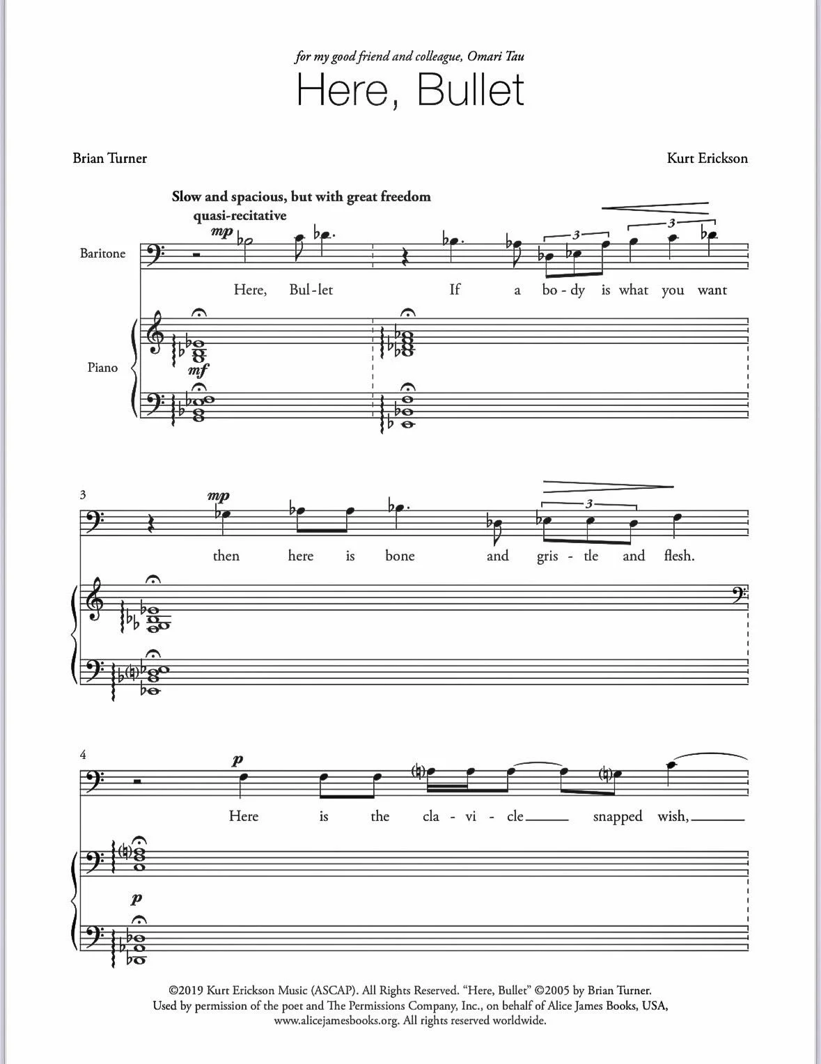 1st Page Vocal Score of “Here, Bullet”